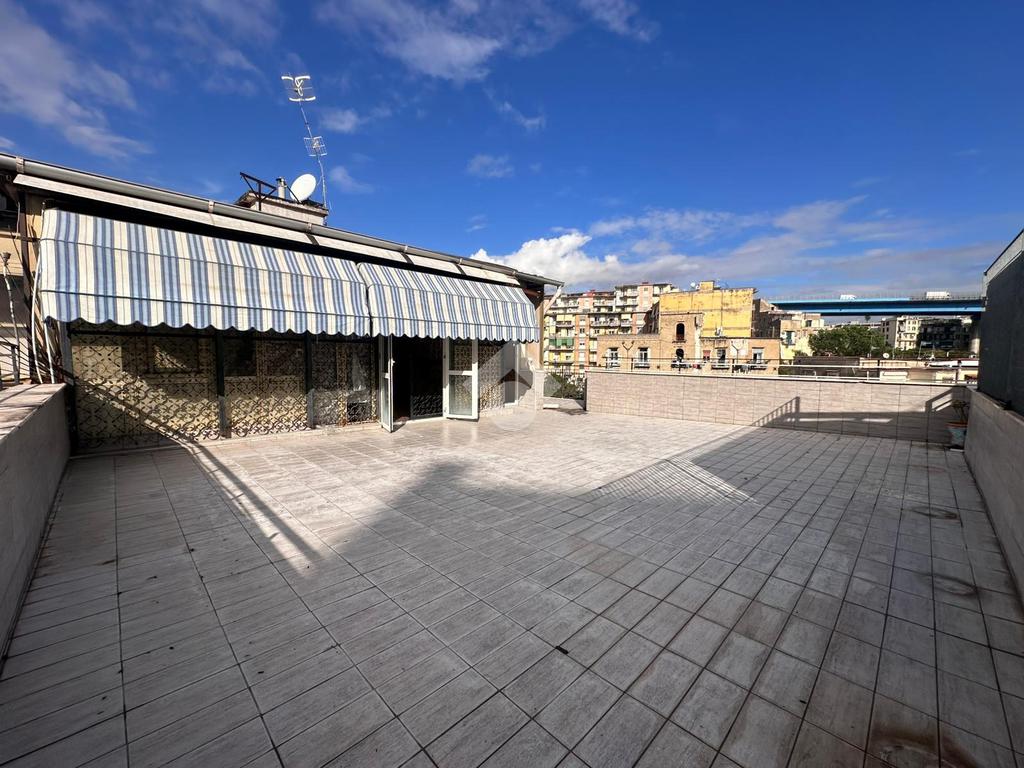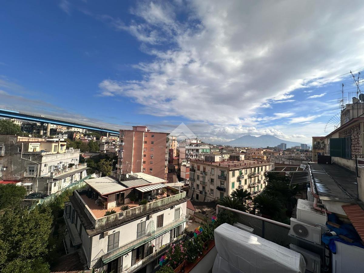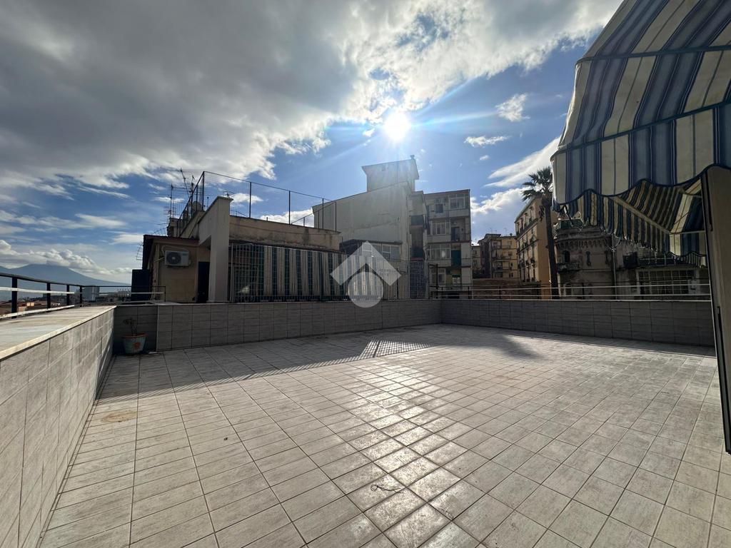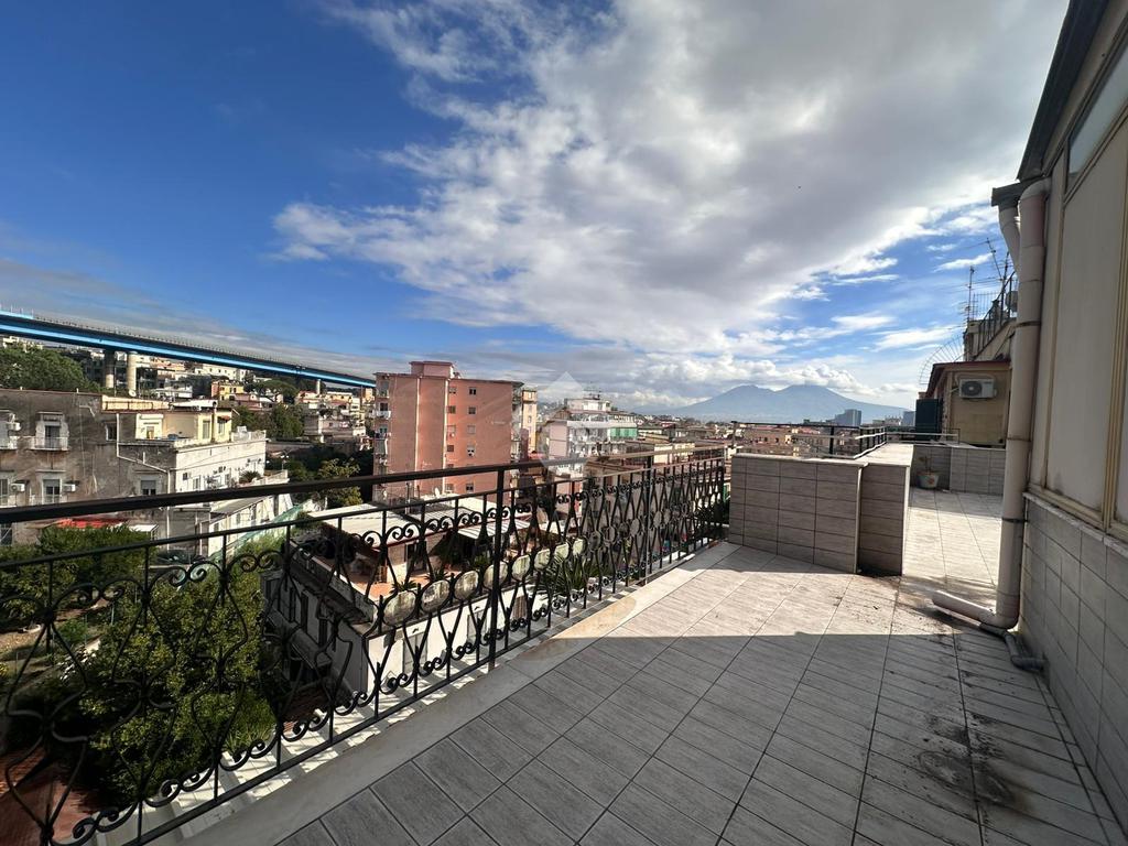 A pochi passi da proponiamo in vendita un attico signorile di 125 mq calpestabile con terrazzo a livello di 70 mq. Il cespite è situato in un contesto residenziale in stabile di cemento armato posto ad un settimo piano con ascensore. L'immobile offre una disposizione interna ben organizzata con quattro locali oltre accessori. La zona giorno si apre sulla cucina con accesso sul terrazzo a livello che regala una vista libera e panoramica sul Vesuvio, di seguito accediamo al salone doppio circondato da vetrate che garantiscono un'ottima luminosità naturale, mentre la zona notte comprende due camere da letto di cui una con accesso sul balcone e servizio con vasca. Inoltre l'immobile vanta di un doppio ingresso che ne aumenta la funzionalità e l'accessibilità. Un'opportunità unica per chi cerca un'immobile con tutti i confort e con ampi spazi interni ed esterni in zona residenziale ma allo stesso tempo ben collegata e servita da attività commerciali di ogni genere.