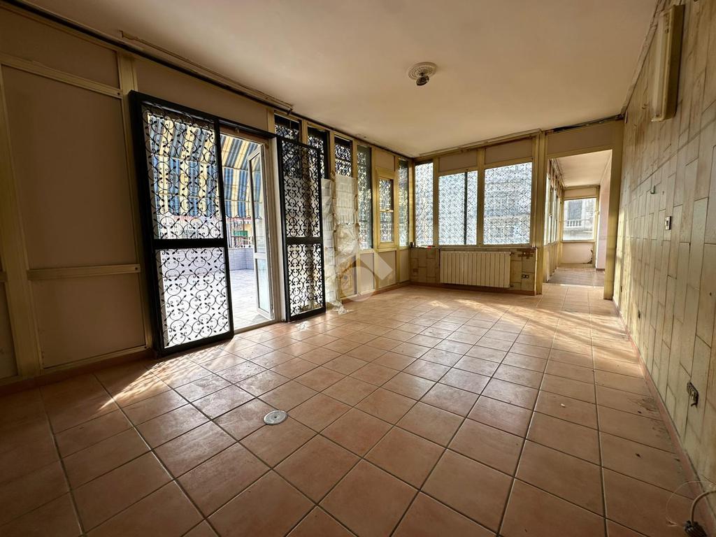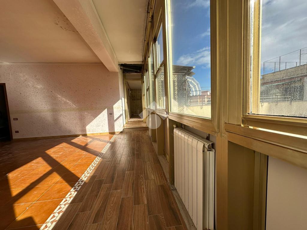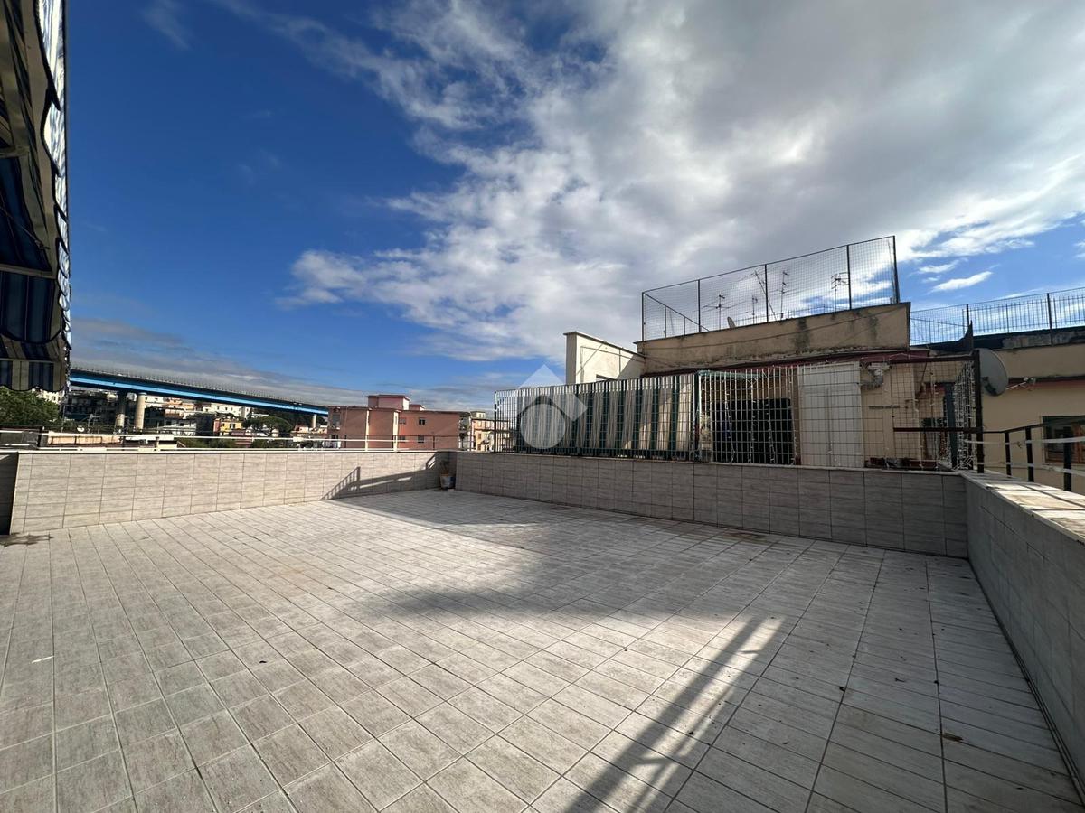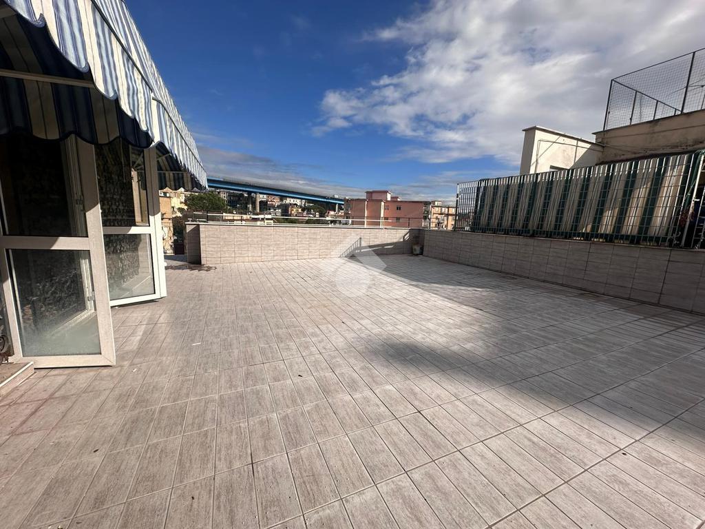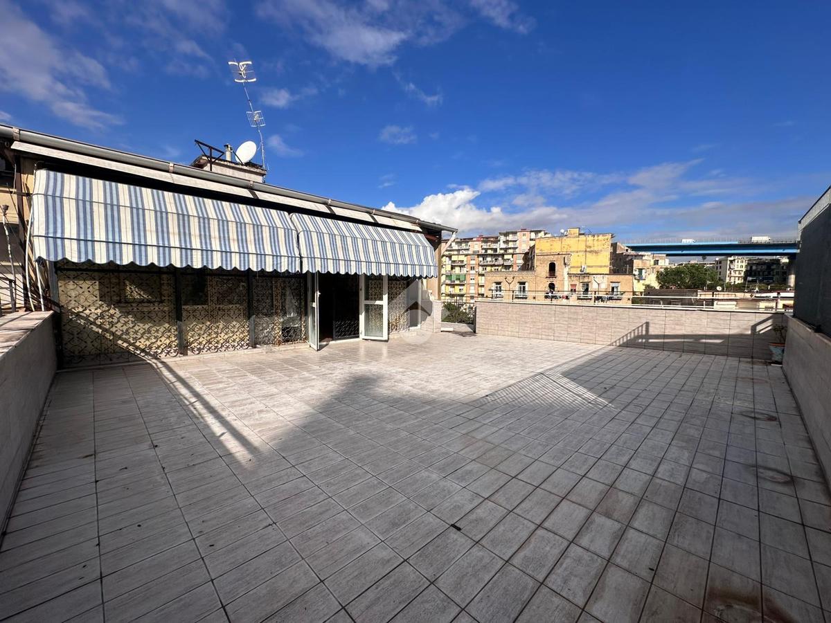 A pochi passi da proponiamo in vendita un attico signorile di 125 mq calpestabile con terrazzo a livello di 70 mq. Il cespite è situato in un contesto residenziale in stabile di cemento armato posto ad un settimo piano con ascensore. L'immobile offre una disposizione interna ben organizzata con quattro locali oltre accessori. La zona giorno si apre sulla cucina con accesso sul terrazzo a livello che regala una vista libera e panoramica sul Vesuvio, di seguito accediamo al salone doppio circondato da vetrate che garantiscono un'ottima luminosità naturale, mentre la zona notte comprende due camere da letto di cui una con accesso sul balcone e servizio con vasca. Inoltre l'immobile vanta di un doppio ingresso che ne aumenta la funzionalità e l'accessibilità. Un'opportunità unica per chi cerca un'immobile con tutti i confort e con ampi spazi interni ed esterni in zona residenziale ma allo stesso tempo ben collegata e servita da attività commerciali di ogni genere.