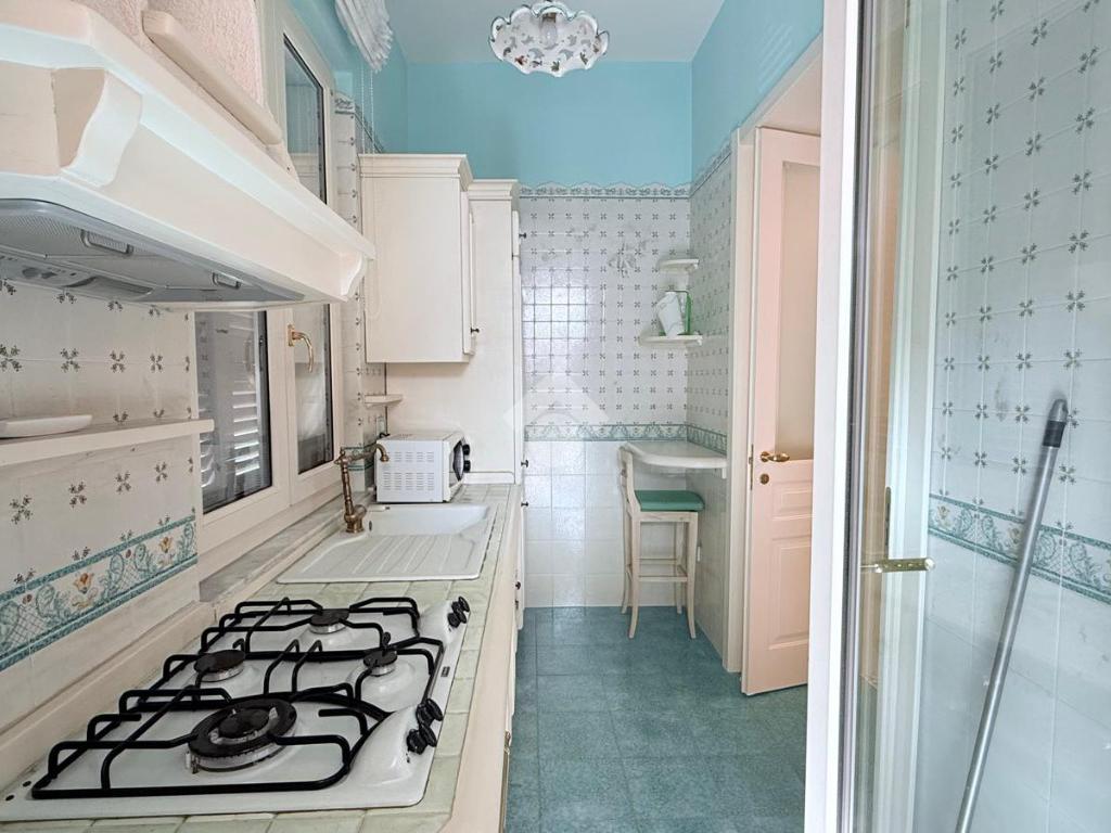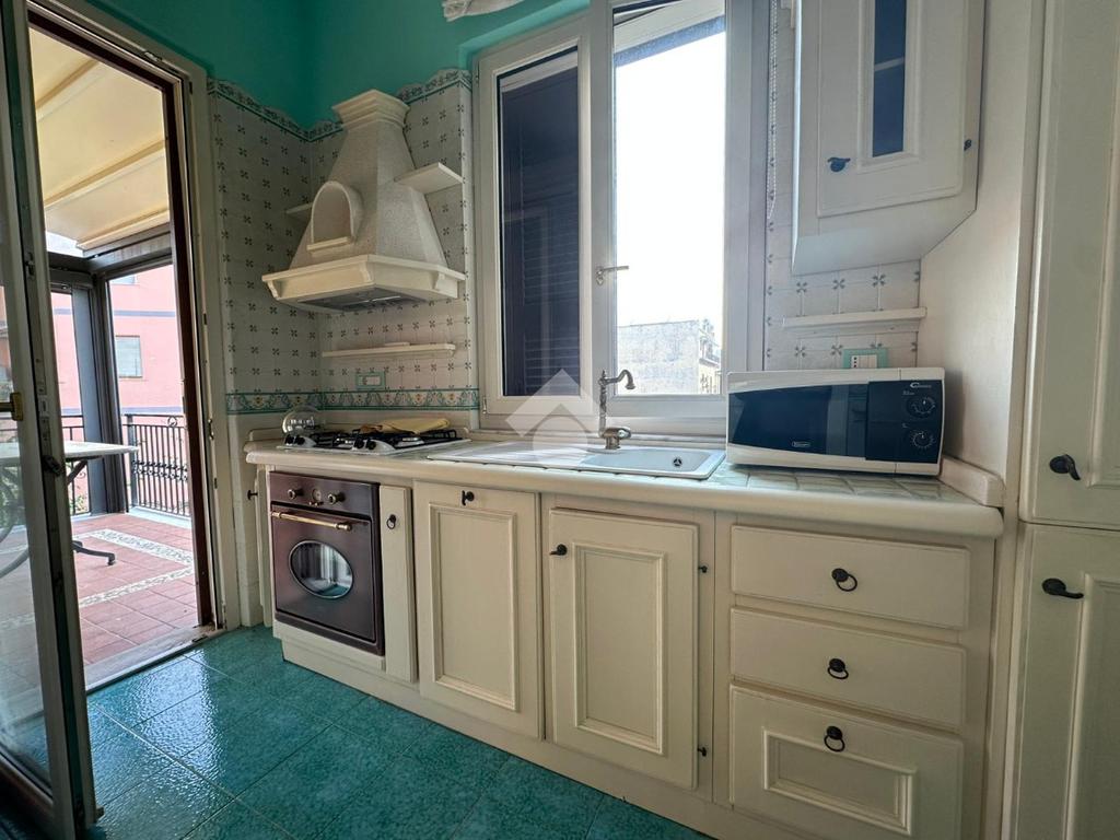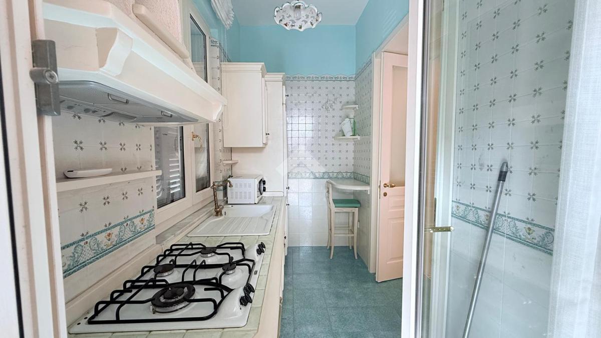 La zona giorno si apre su un pratico cucinotto a cui si accede al terrazzo, ideale per momenti di relax e convivialità, che garantisce una luminosità naturale agli ambienti interni.
